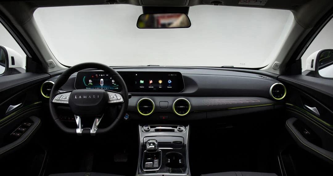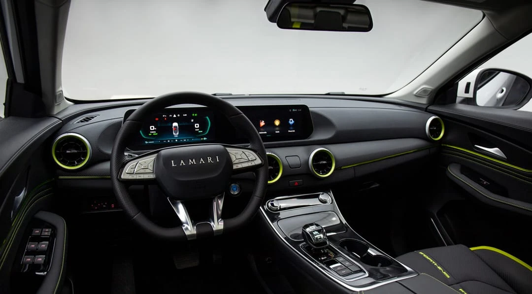 فضای داخل با داشبورد یکپارچه، نمایشگرهای دیجیتال بزرگ، تریم چرمی با کیفیت و طراحی مدرن، حس یک کابین پیشرفته را منتقل میکند. نمایشگر لمسی مرکزی، صفحهنمایش دیجیتال پشت فرمان، فرمان چرمی با دکمههای چندکاره و صندلیهای چرمی ارگونومیک، ترکیبی از راحتی و تکنولوژی را ارائه میدهند.