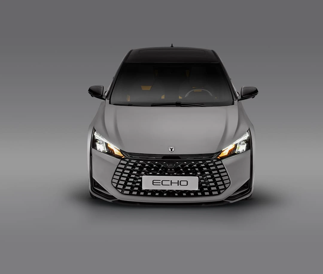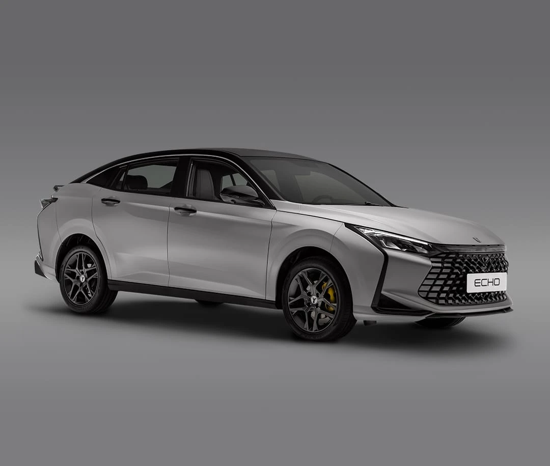 جلوپنجره کشیده و چراغهای LED دیلایت باریک، جلوهای مدرن به Echo دادهاند. چراغهای اصلی پایینتر قرار گرفتهاند تا استایل خودرو کامل شود. خطوط ساده و روان بدنه بر آیرودینامیک تأکید دارند و رینگهای 17 اینچی آلیاژی، استایل را تکمیل میکنند. نمای عقب با چراغهای LED پیوسته، ظاهری هماهنگ و جذاب ایجاد کرده است.