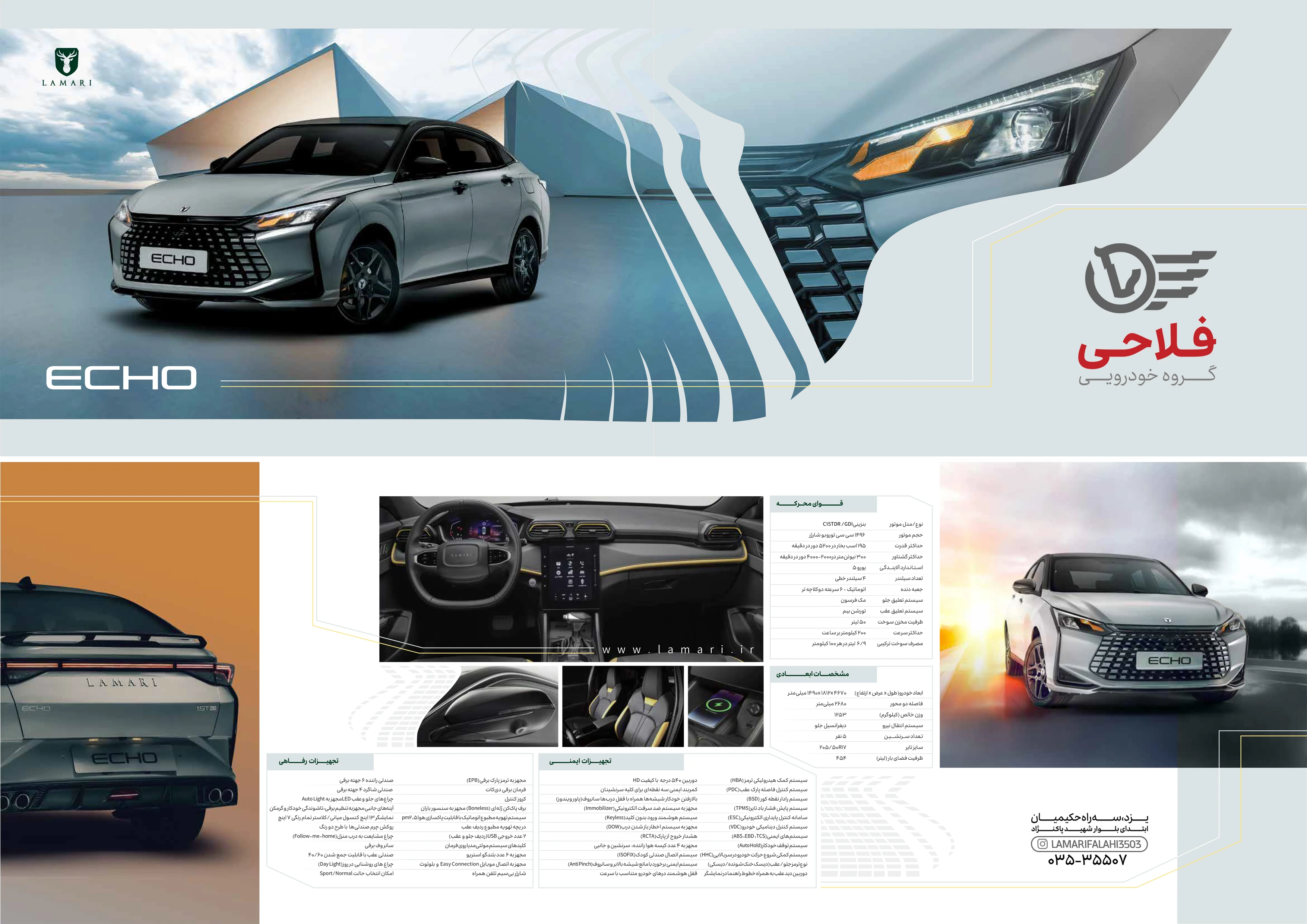 Lamari Echo یک سدان کامپکت شهری است که با تمرکز بر طراحی مدرن، کابین راحت و کارایی مناسب برای استفاده روزمره تولید شده است. این خودرو با زبان طراحی جدید Lamari، تعادلی بین زیبایی ظاهری، راحتی سرنشینان و کارکرد قابل قبول در شهر ایجاد کرده است و گزینهای اقتصادی برای استفاده روزانه بهشمار میرود.