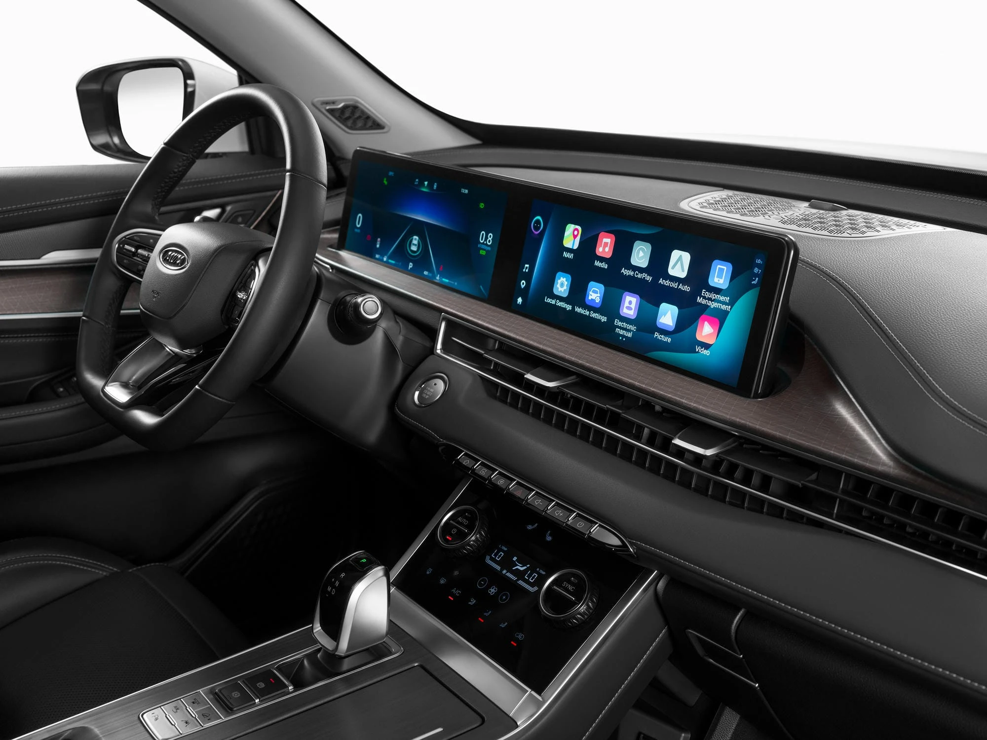 وارد کابین MVM X77 که میشوید، گویی به دنیایی دیگر قدم گذاشتهاید؛ دنیایی که در آن تجمل، راحتی و تکنولوژی به زیباترین شکل ممکن در هم آمیختهاند. داشبورد با طراحی دوبخشی و استفاده از مواد باکیفیت، حس لوکس بودن را القا میکند. نمایشگر مرکزی 12.3 اینچی شناور، مرکز فرماندهی تمامی امکانات خودرو است که دسترسی به آنها را بسیار آسان و لذتبخش میسازد. نمایشگر 12.3اینچی پشت فرمان نیز اطلاعات لازم را به شکلی واضح و خوانا ارائه میدهد. صندلیهای چرمی ارگونومیک با قابلیت تنظیمات برقی برای راننده و سرنشین جلو، گرمکن و سردکن، نهایت راحتی را حتی در طولانیترین سفرها فراهم میکنند. سیستم تهویه مطبوع اتوماتیک دو منطقهای، نورپردازی داخلی قابل تنظیم و سیستم صوتی پیشرفته، تجربهای بینظیر را برای تمامی سرنشینان رقم میزنند.